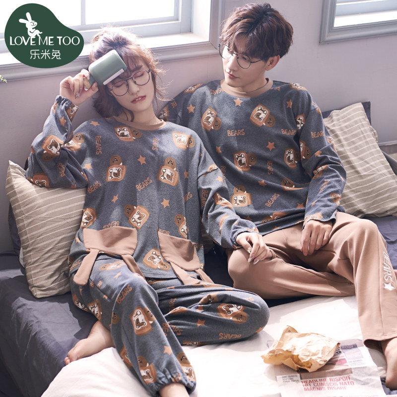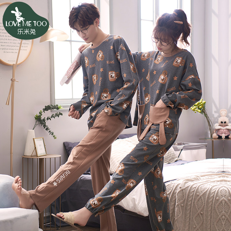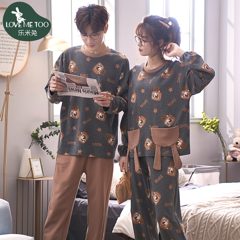 2021 new couple pajamas autumn long-sleeved cotton girl two-piece spring and autumn cute men's homewear suit