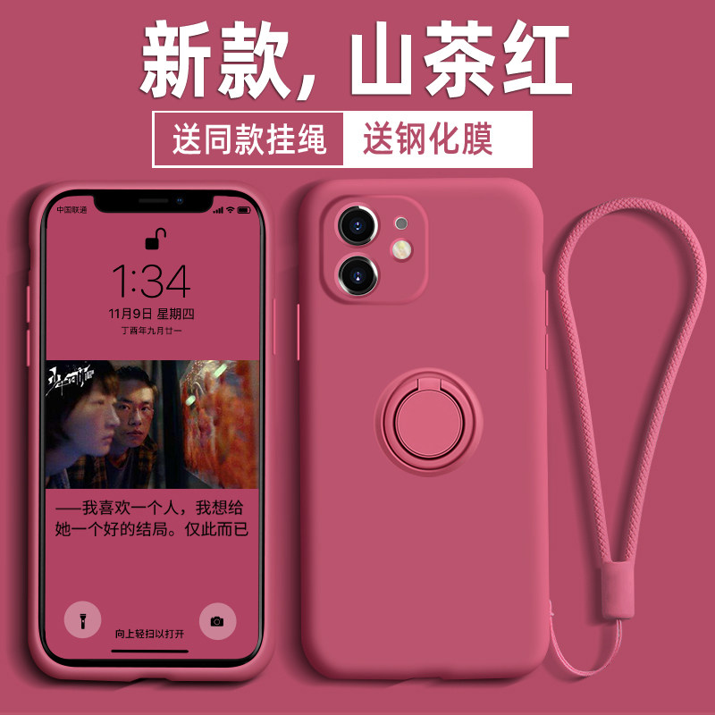 Apple 11 mobile phone protective shell liquid silicone onboard magnetic suction bracket iphone11pro protective shell lens full package 11promax protective sheath with hanging rope mesh red overfire 11p eleven