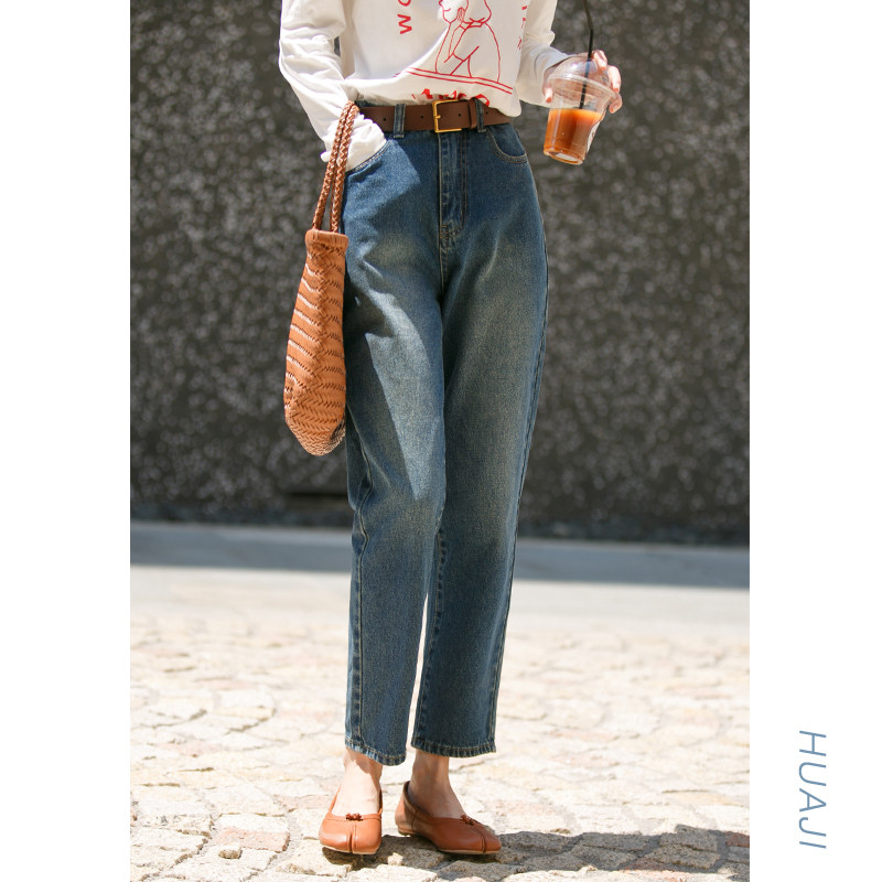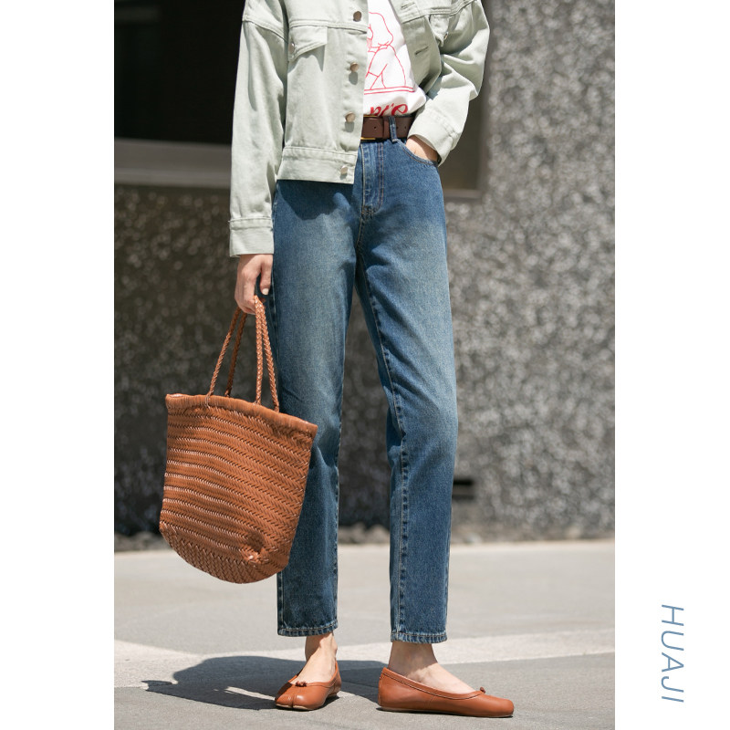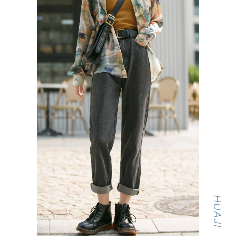 Flower gig K906 carbon grey 90% small feet high waist jeans female display slim display high 2022 new straight cylinder loose