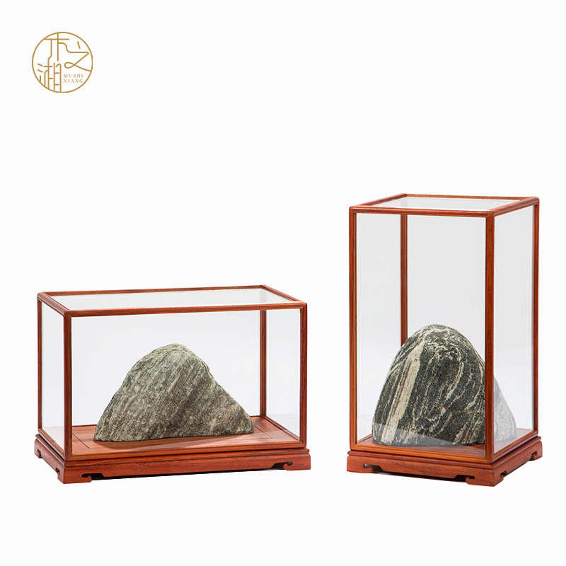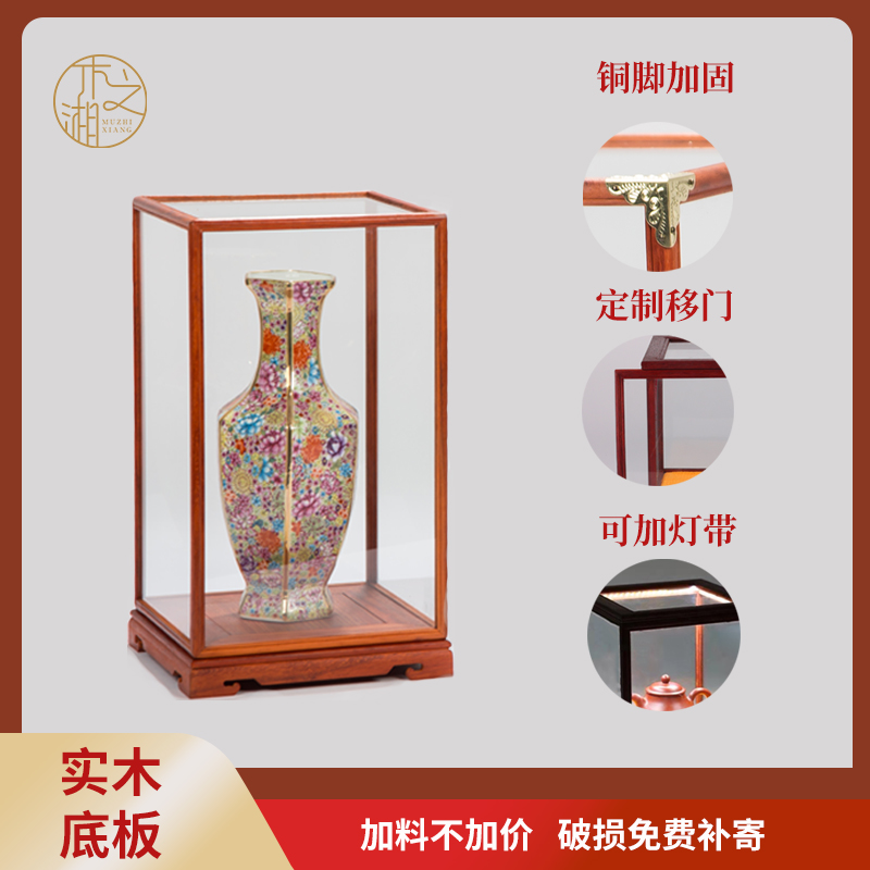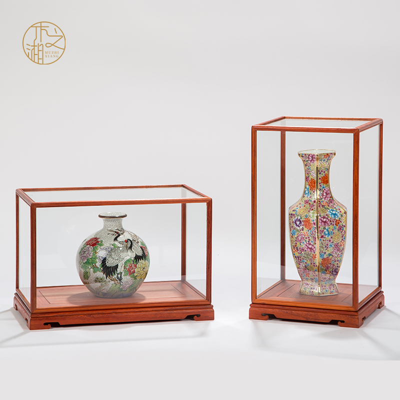Mahogany glass cover rosewood base dust cover vase Buddha statue handicraft ornament display treasure cage can be customized