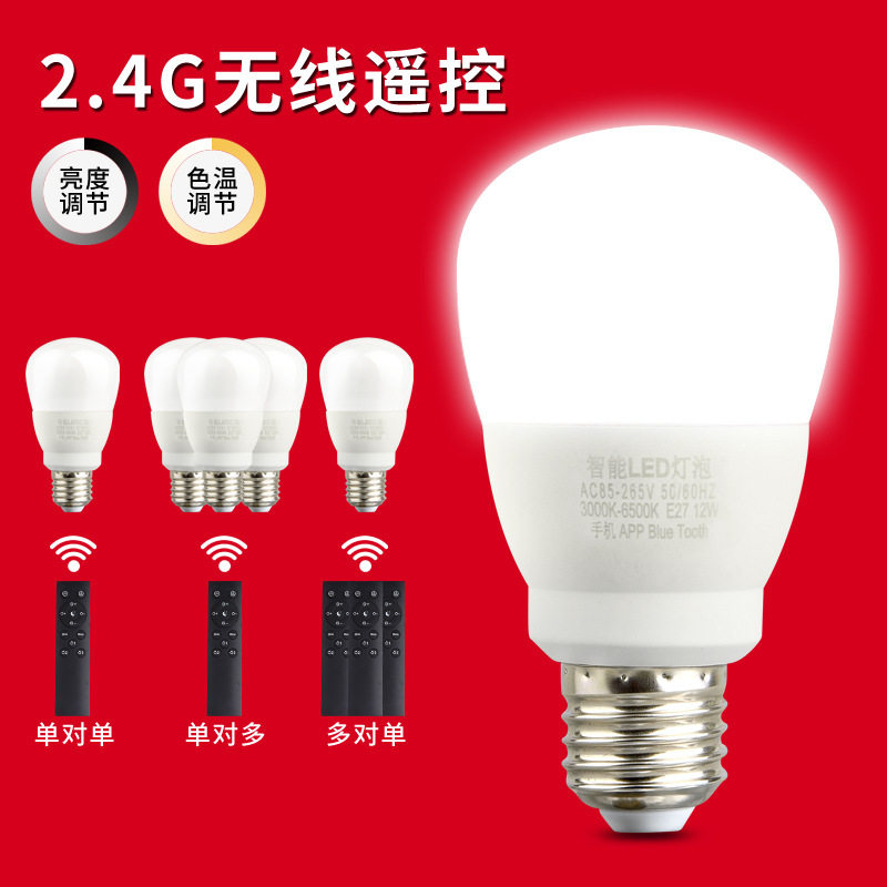 Product source wireless LED remote control bulb 2 4G dual color dimming WIFI intelligent E27 screw bulb