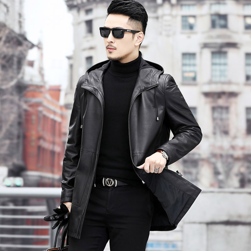 Spring and Autumn New Head Cow Fur Dress Men's Length - Leather Garment Men's Leisure Cover