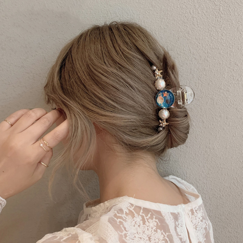 Back Brain Spoon Grip Clip Hair Clip South Korea Retro Temperament Elegant Big Hair Ins Bath Hair Clip Pearl Head Accessories Woman