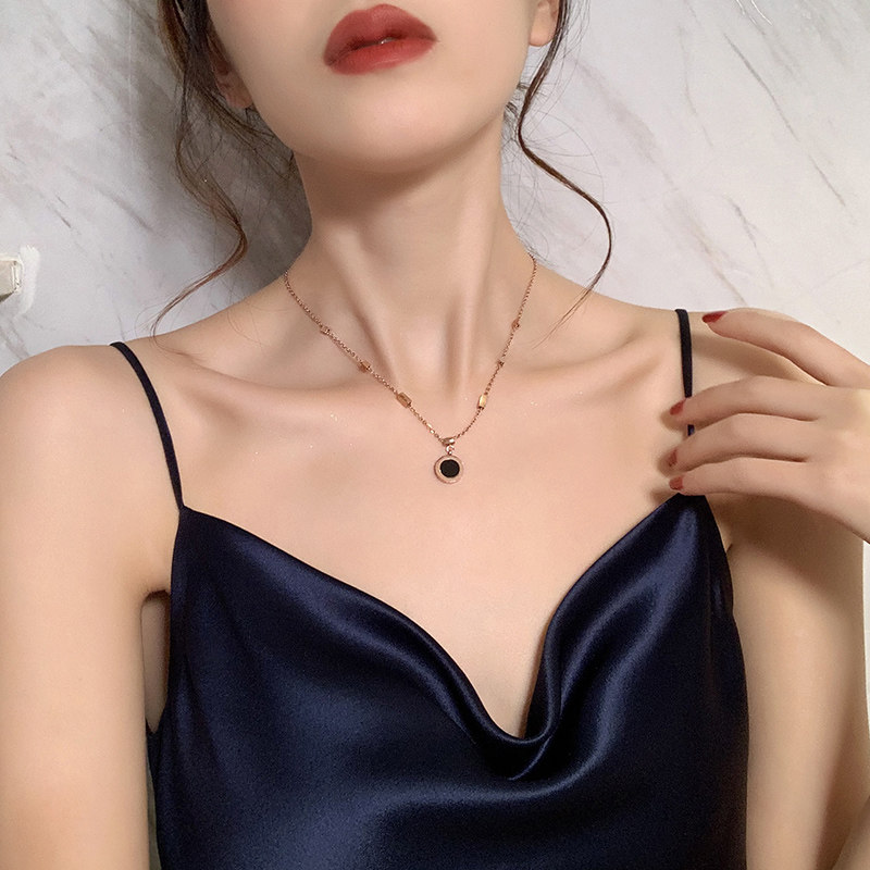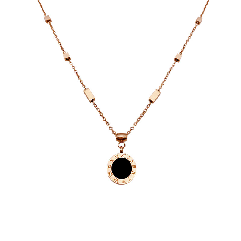 No Fade Necklace Women's Anti Allergy Small Crowddesign Sensation Ins Romans Digital Lock Bone Chain Brief Round of Rose Gold-Taobao