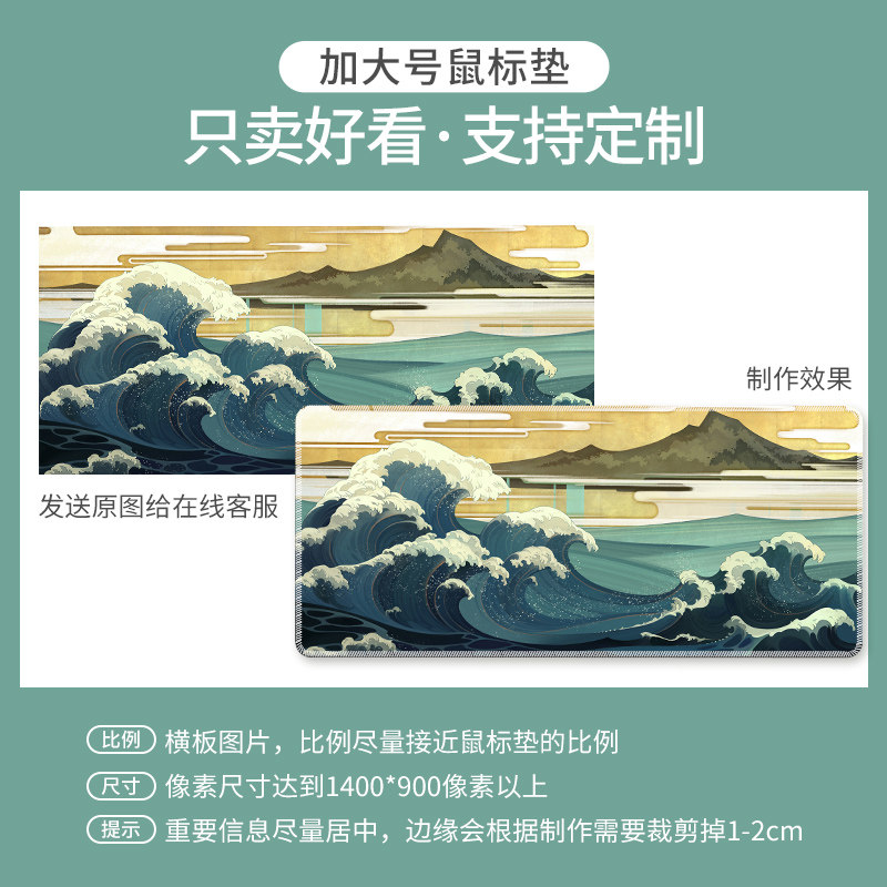 Oversized lock-edge mouse pad and wind ukiyo-e Fugaku thirty-six scenery Kanagawa surf Rikatsu Hokusai student desk mat geisha samurai keyboard pad ninja hundred ghosts night travel computer pad
