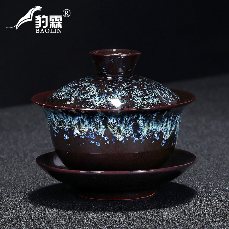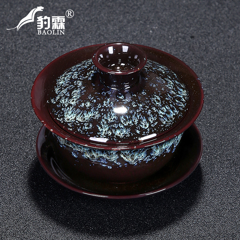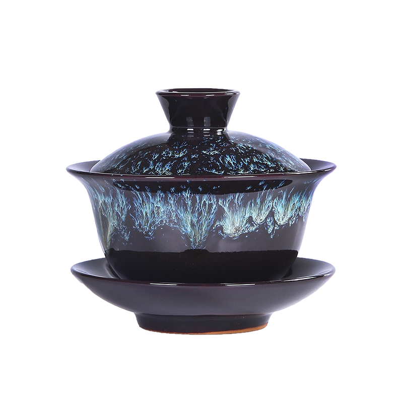 Kiln Change Large Number Cover Bowl Sand Gold Glazed Jianzengfu Tea Tea Teapot Tea Cup Ceramic Single Tea Road Spare Parts