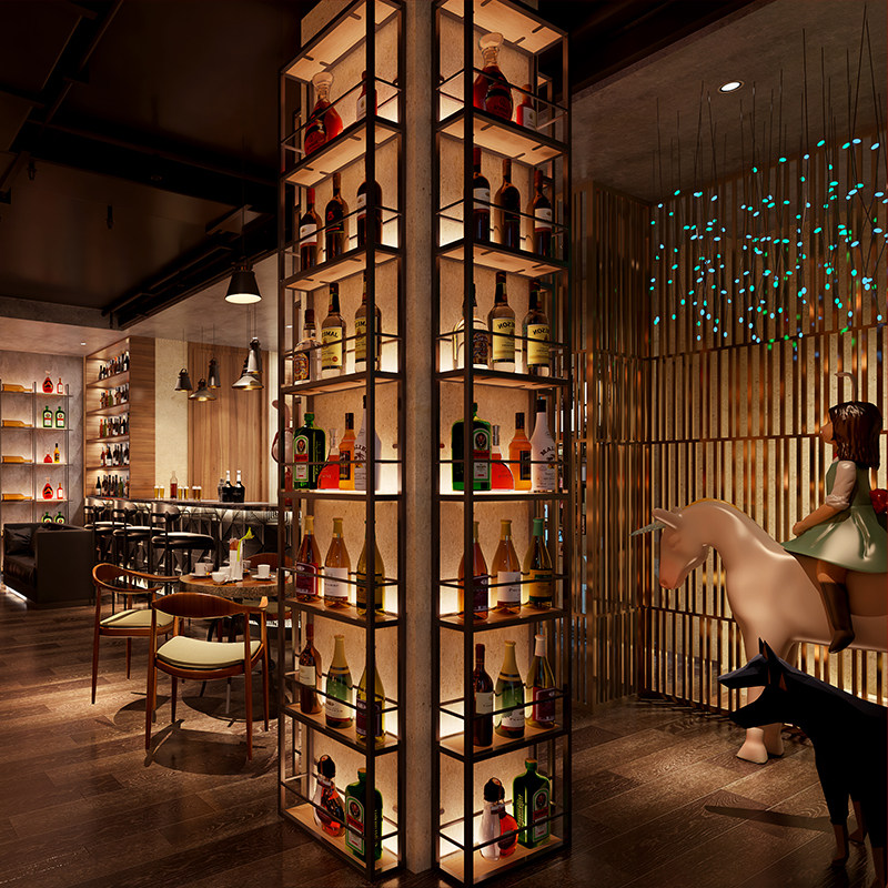 Wrought iron wine rack Screen beer rack Bar wall wine partition Winery bar creative bar wine cabinet shelf