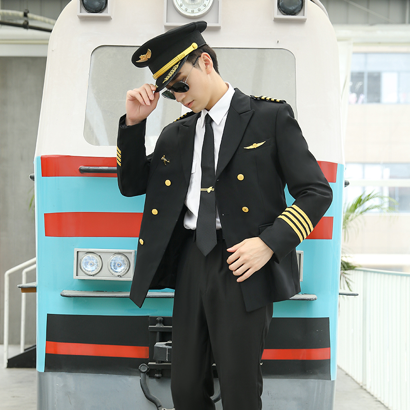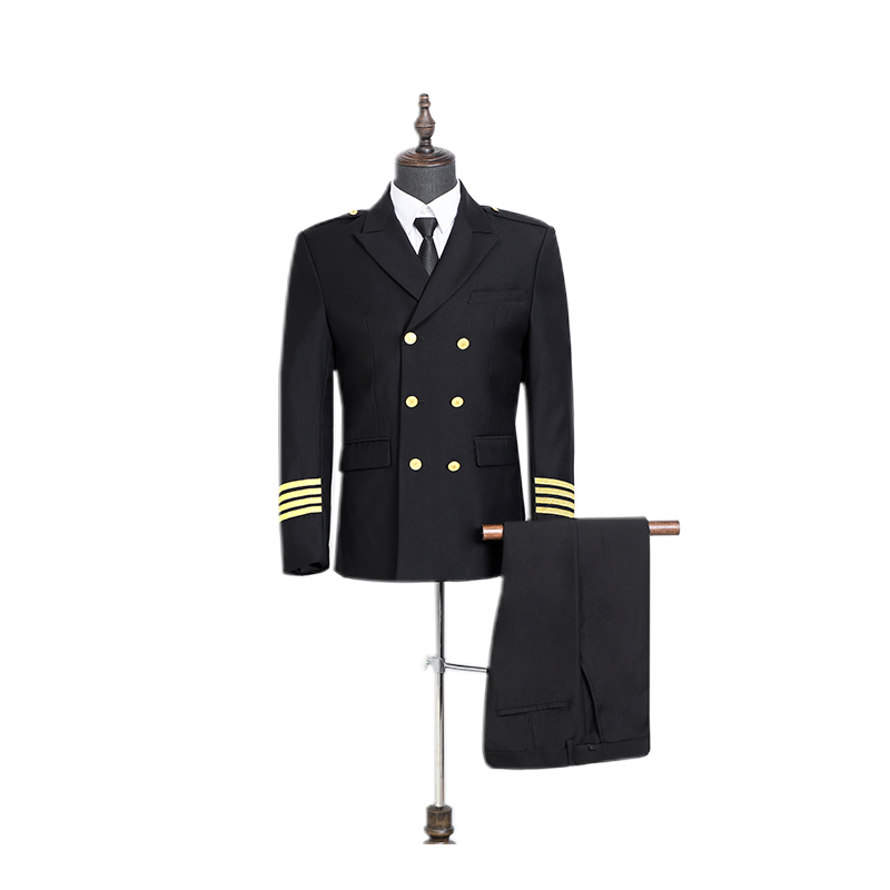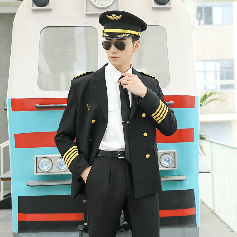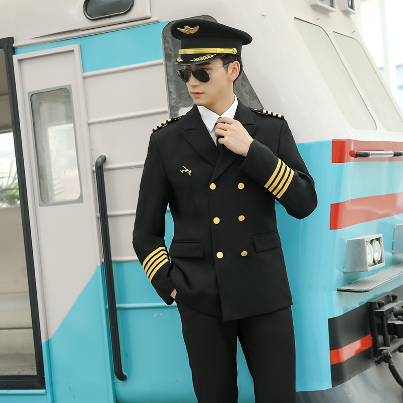 Tooling Uniform Suit Aviation School Men's Black Three-Grain Double-Row Buttoned Suit Is Loading Captain Security Work Suit