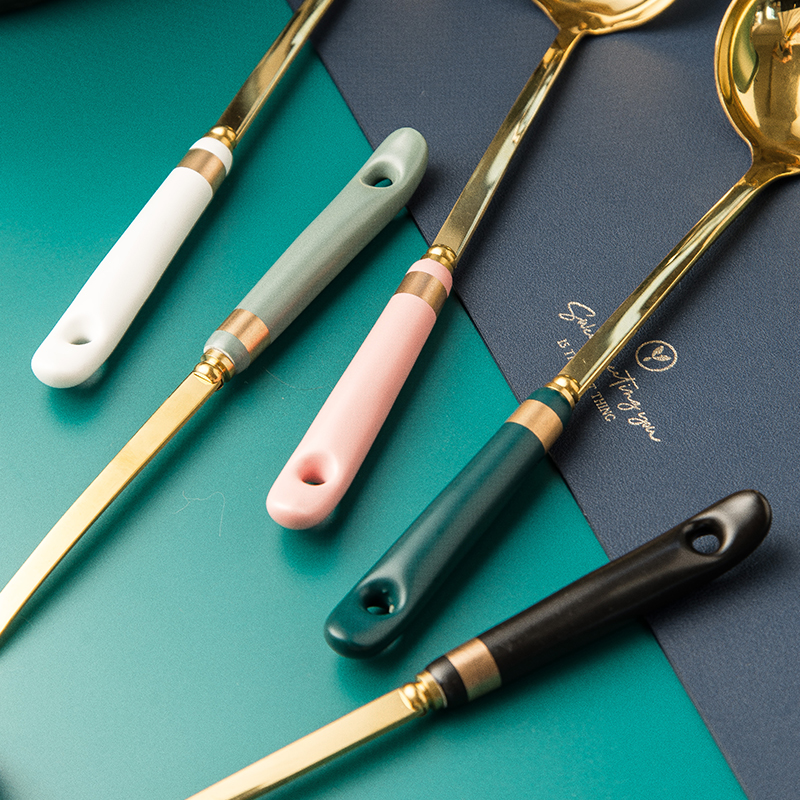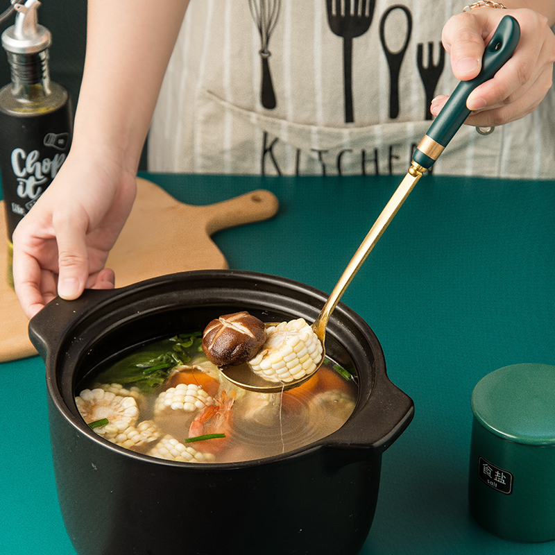 Emerald matte--Hot pot soup spoon (gold ribbon) emerald matte--hot pot spoon (gold ribbon) pearl white matte--hot pot soup spoon (gold ribbon) pearl white matte--hot pot spoon (hot pot)
