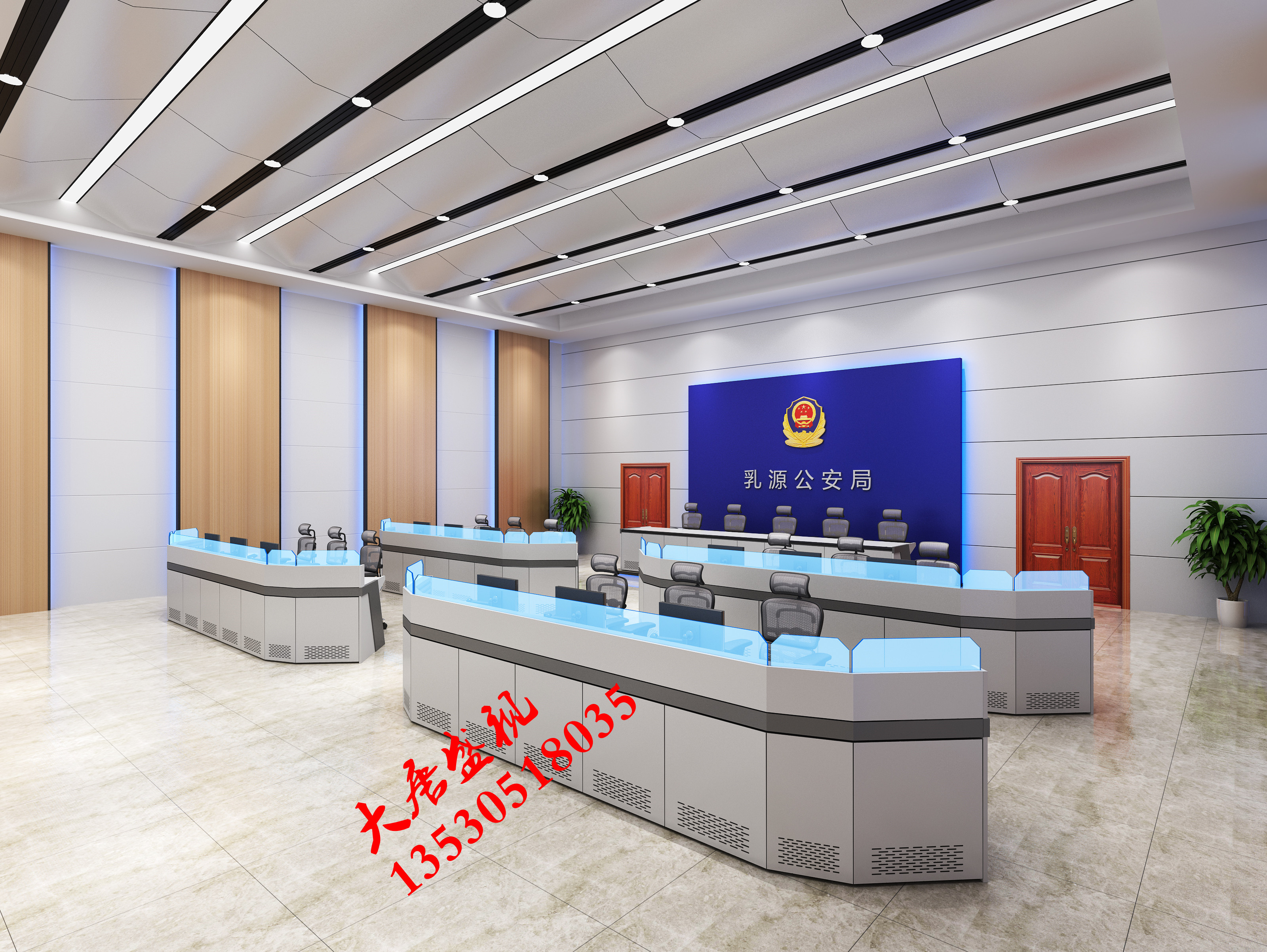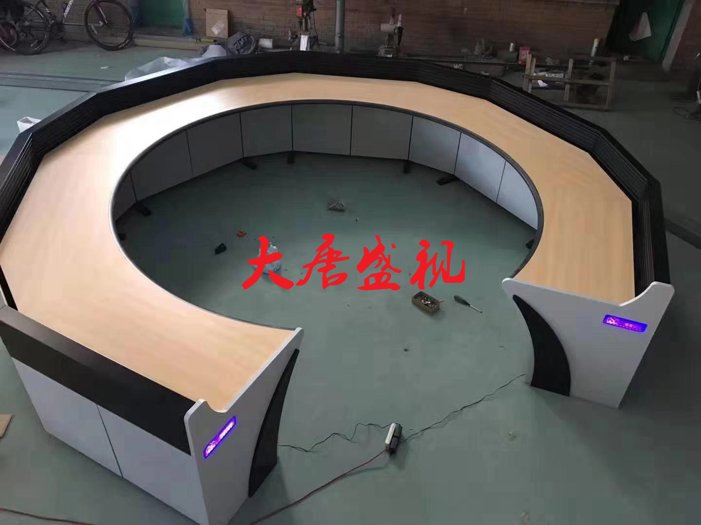 Manufacturers custom computer desk office monitoring console wooden countertop luxury console with back panel edge dispatcher