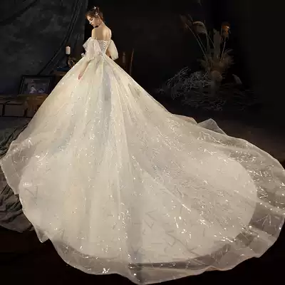 One-character shoulder wedding dress 2021 new bride tailing temperament Starry dream Super fairy pregnant woman cover pregnant belly high waist