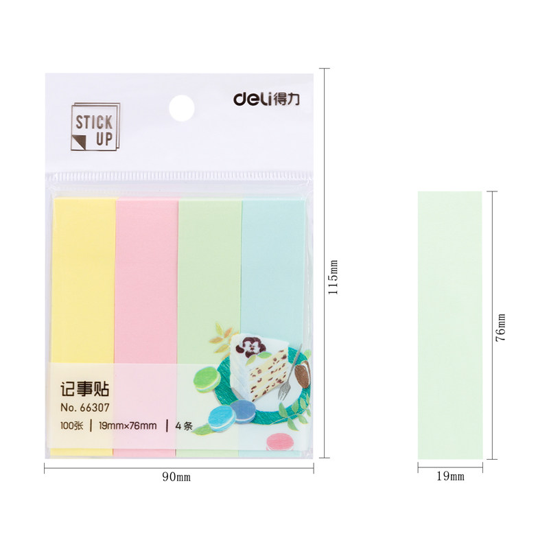 deli (deli)400 sheets of 4-color slitting post-it note paper Post-it note paper 76*19mm N times paste 66307