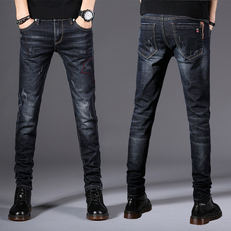 Official website flagship store 2021 spring and autumn new jeans men's slim pipe pants men Korean stretch young men