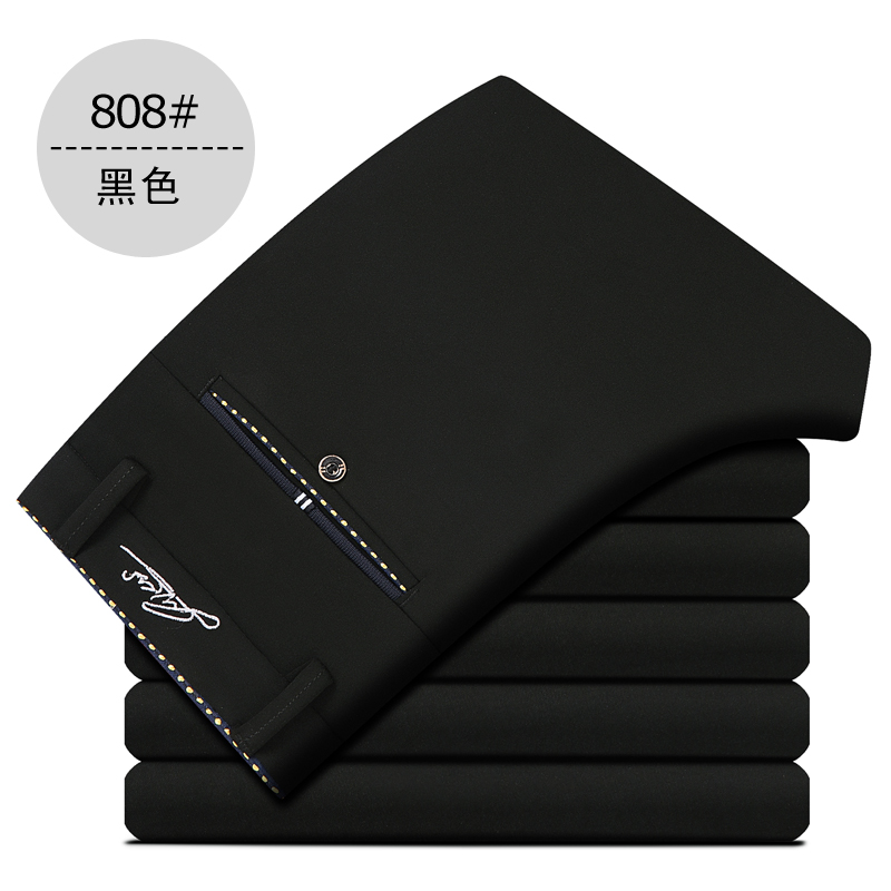 Summer Men Business Casual Pants Slim 100 hitch pants High elastic knit pants Youth to work Straight tube long pants