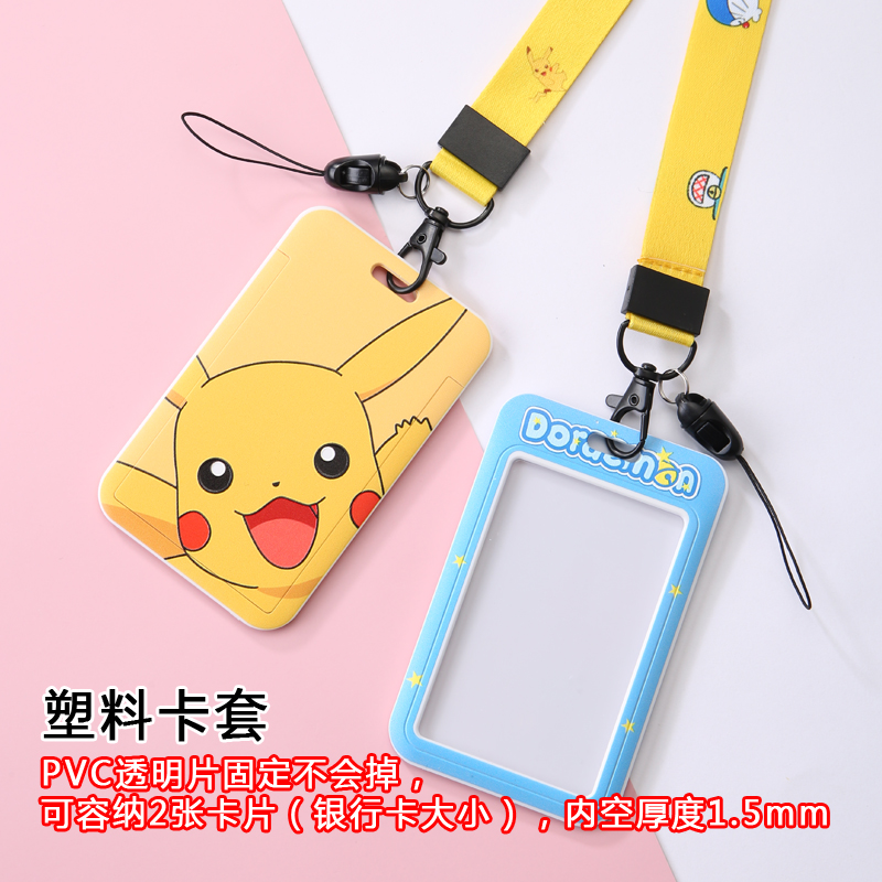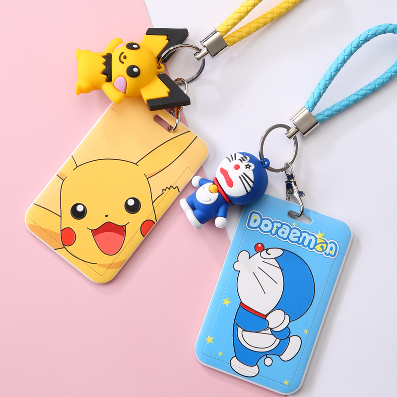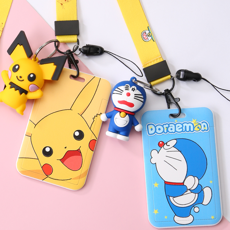 Doraemon Card Holder Hanging Buckle Pikachu Card Holder Hanging Buckle Doraemon Card Holder Blue Rope Pikachu Card Holder Yellow Rope Doraemon Card Holder Blue Rope Doll Pikachu Card Holder Yellow Rope