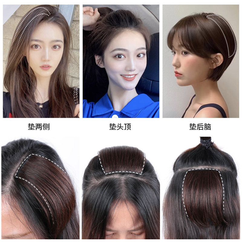 Real Hair Pad Hair-pad Invisible Cushion Hair Root thickened wig sheet fluffy off top of the head cushion High Tonic Hair sheet Female