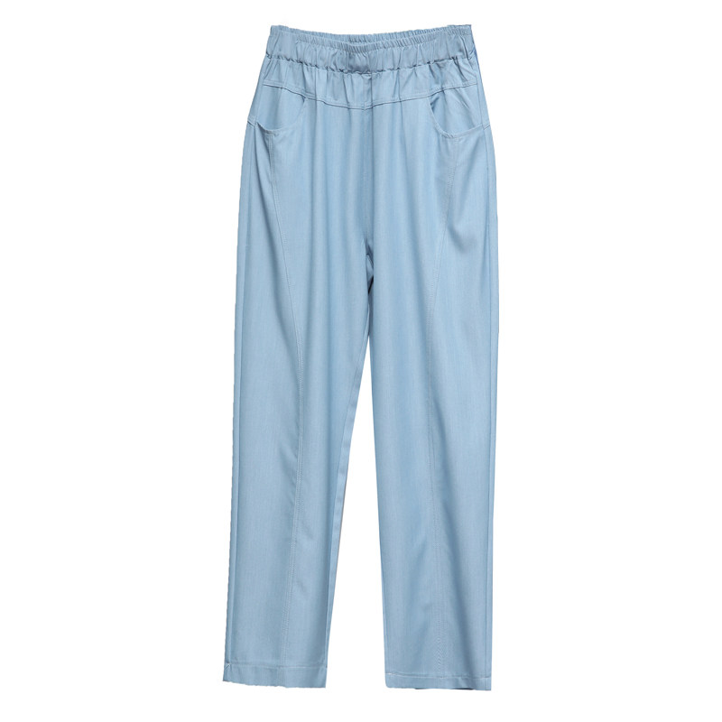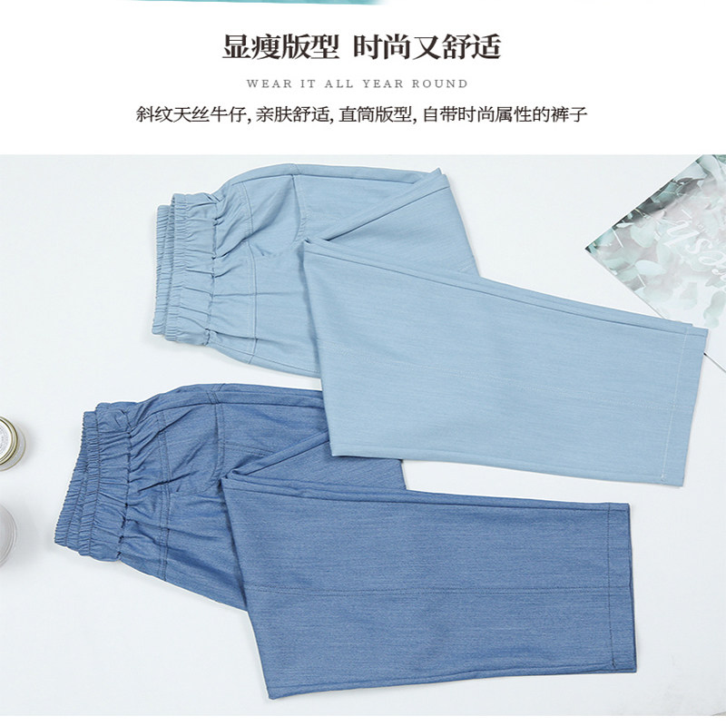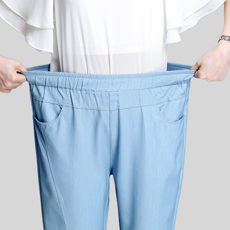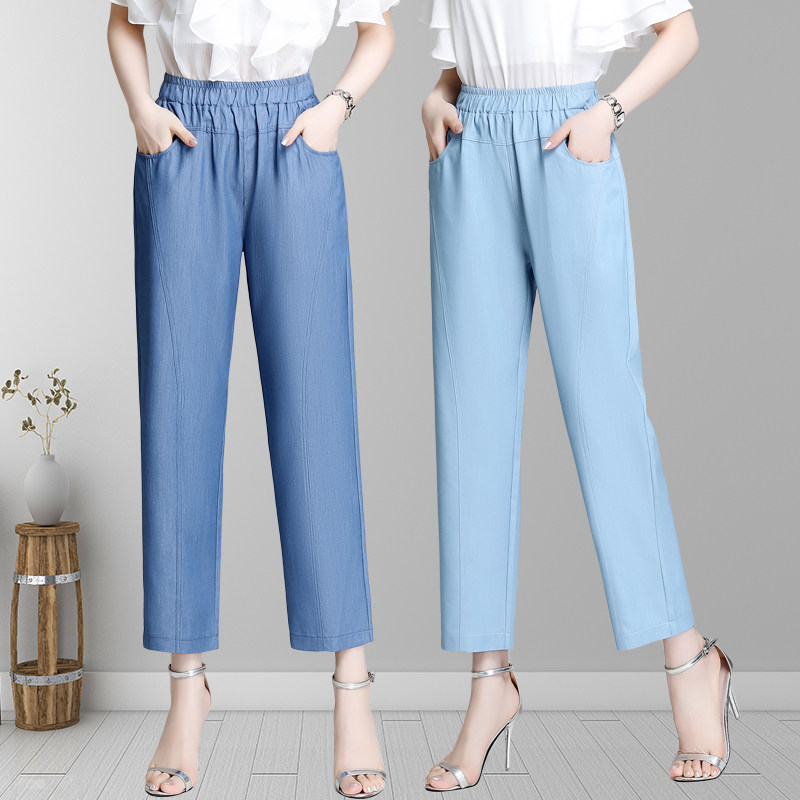 Middle-aged mother jeans summer thin elderly women ice silk high waist loose nine points pants silk straight tube mosquito