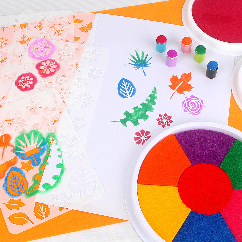 5 finger cots, smudged sponge brushes, 24 finger cots, soft seals, 20 finger cots, brushes, 5 pieces of smudged painting templates, smudged sponge brushes, template combinations, smudged sponge brushes, templates, seven-color ink pad combinations, 20