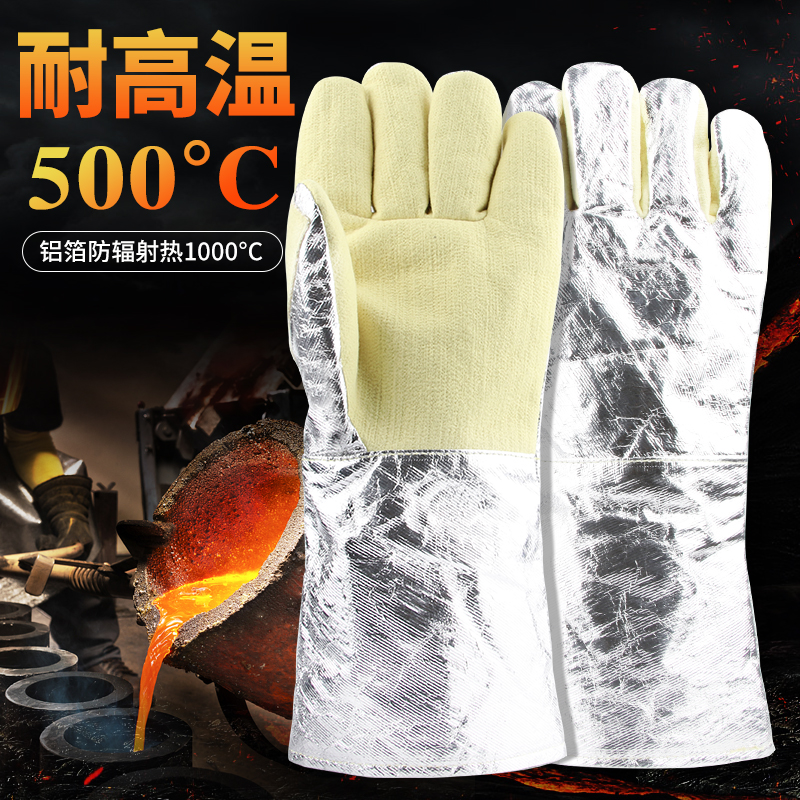 Industrial anti-scalding gloves Aluminum foil wear-resistant thickened metallurgical fire flame retardant 300 degree five-finger high temperature insulation gloves