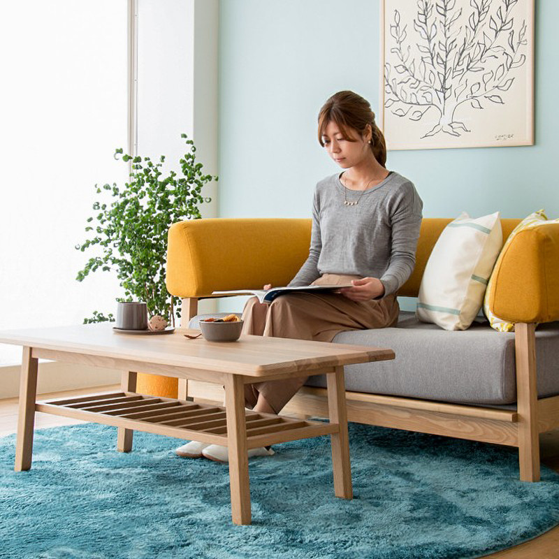 Nordic Japanese-style ins two-seat sofa small apartment type detachable washable single bedroom fabric sofa solid wood beauty three people