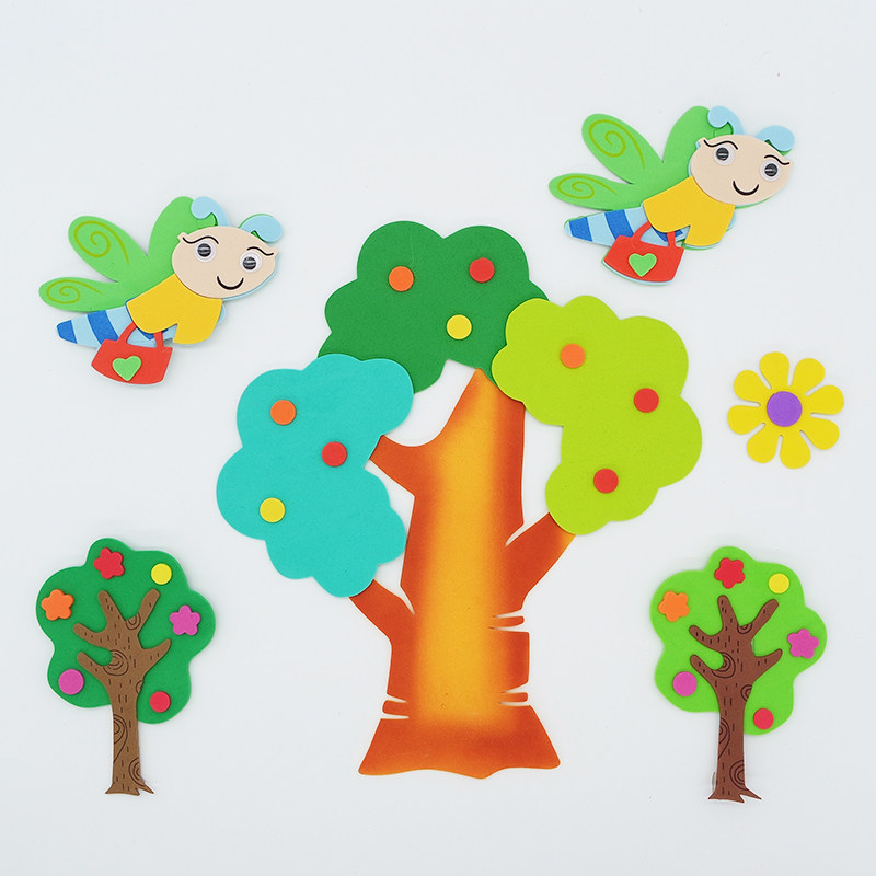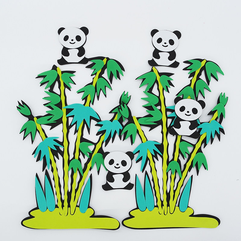 Panda bamboo coconut tree wall decorates the 3D stereo foam room wall in the mall school kindergarten environment