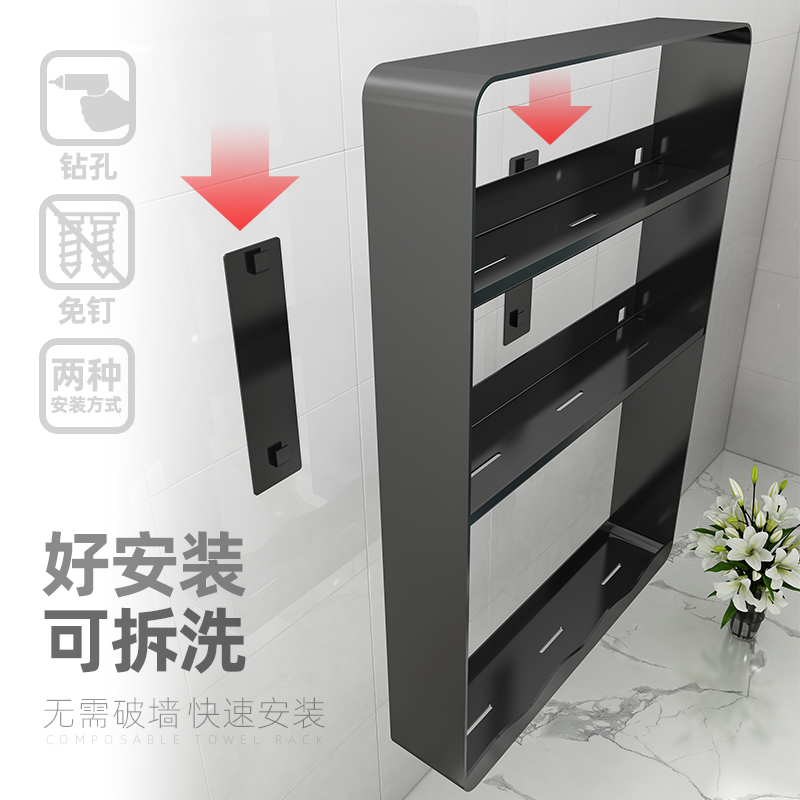 Powder room shelf washstand storage cabinet Cosmetics bathroom Light luxury wind Wall-mounted wall-mounted wall-mounted toilet