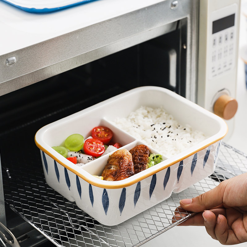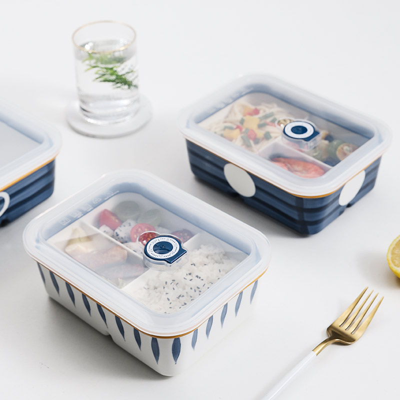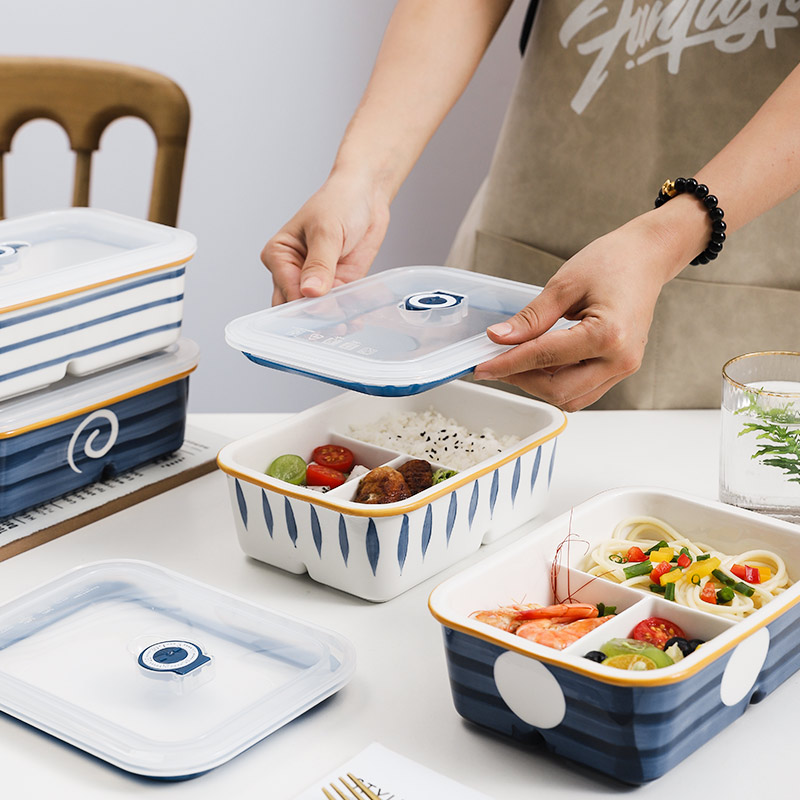 Ceramic compartment Japanese-style bento lunch box to work with rice fresh-keeping bowl microwave oven special with lid sealed fresh-keeping box