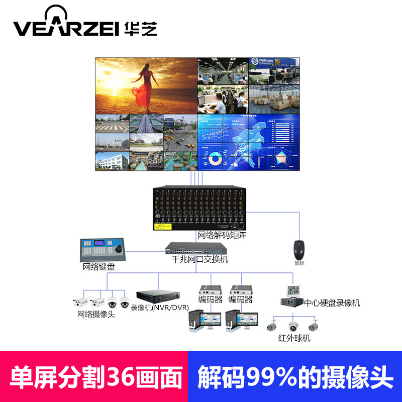 HD network decoding matrix switching network video surveillance decoder is compatible with Hikvision Dahua H265 H264