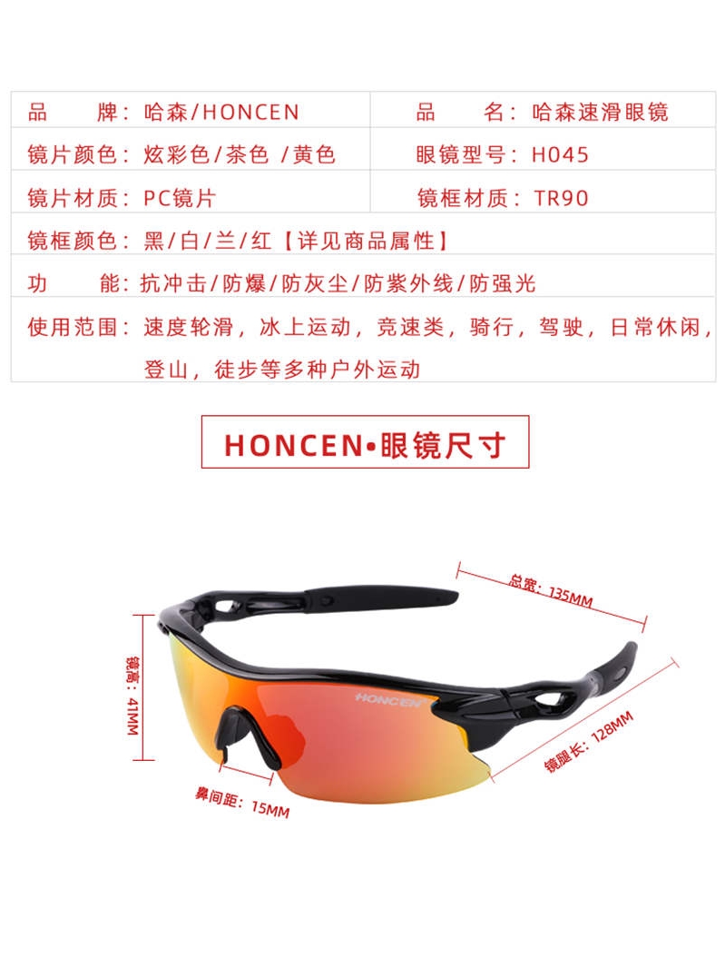 HONCEN Kids Speed Skating Glasses Cycling Roller Skating Running Bike Sun Sandproof Glasses Men and Women Adults