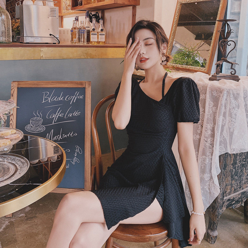 Swimsuit women's 2021 new summer cover belly thin conservative one-piece gathered sleeves Korea ins fairy fan seaside swimsuit