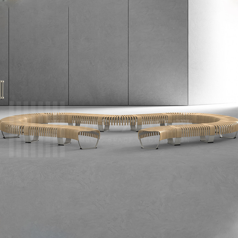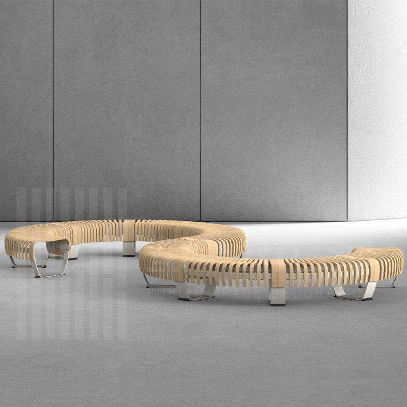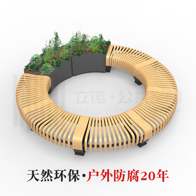 Shopping mall wooden leisure chair creative bench solid wood round simple slice stainless steel special-shaped leisure seat customization