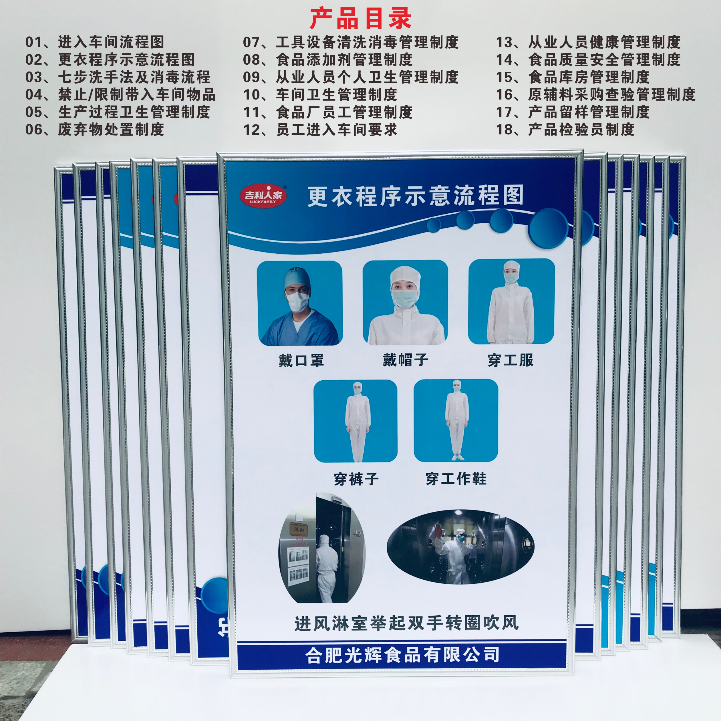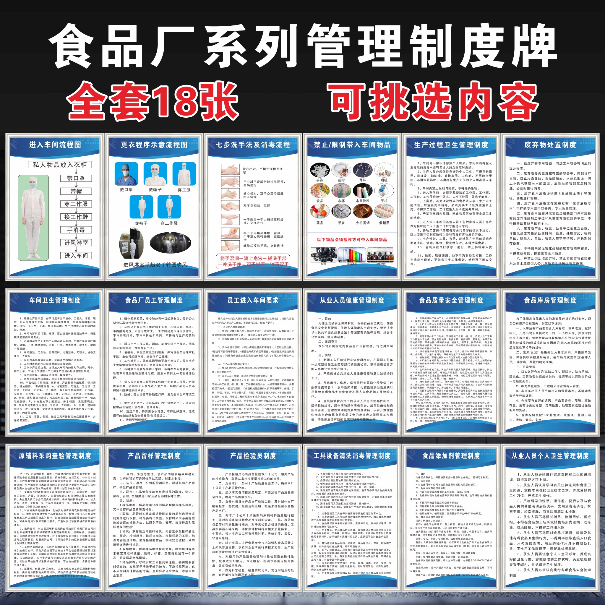 Food processing factory workshop management rules and regulations practitioners health management signs small workshop health inspection into the workshop flow chart seven-step hand washing method and disinfection slogan wall chart