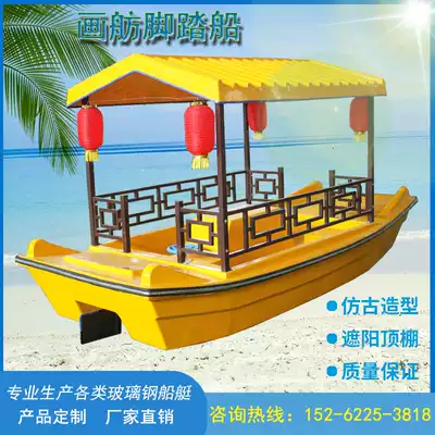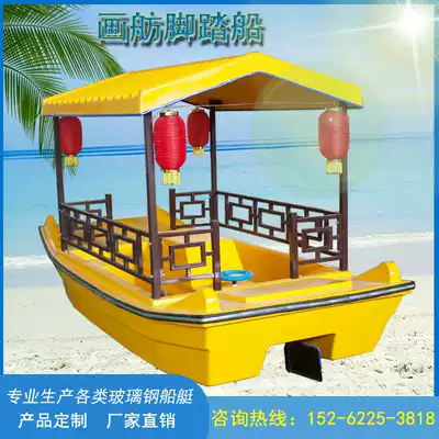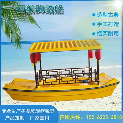 Water park sightseeing pedal boat Retro painting boat Pedal boat Scenic area amusement four-person pedal boat Fiberglass boat