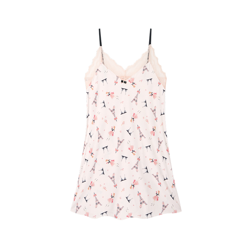 Condole of silk of EBLIN of sweet and sexy print takes sleep skirt female in leisure skirt home is served V to get dress chunxia money