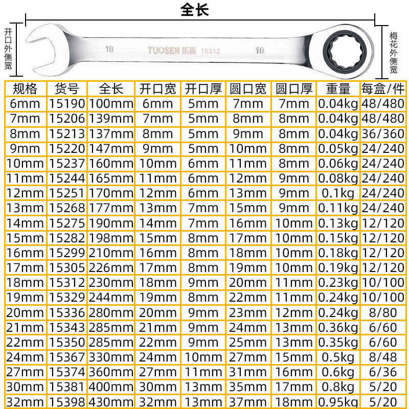 Trawson five gold tools 15 pieces of 8-24mm dual-use ratchet wrench suit 10 pieces of 8-19mm steam repair wrench