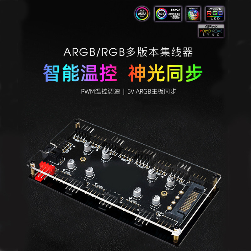 RGB lamp 12V4-pin ARGB fan 5V3-pin hub HUB four-pin temperature control AURA Shenguang synchronization controller
