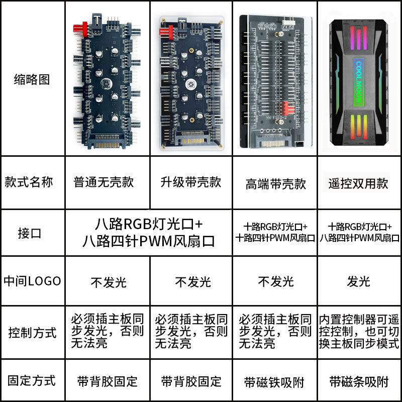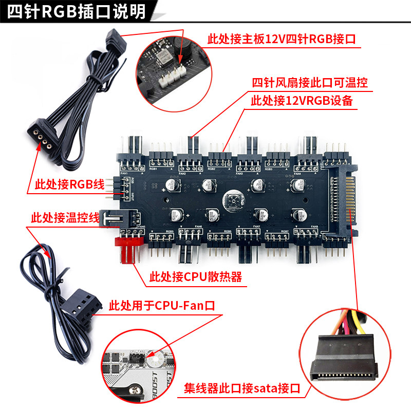 Normal 12V RGB fan 4-pin hub Normal 5V ARGB fan 4-pin hub upgrade 12V RGB fan 4-pin hub upgrade 5V