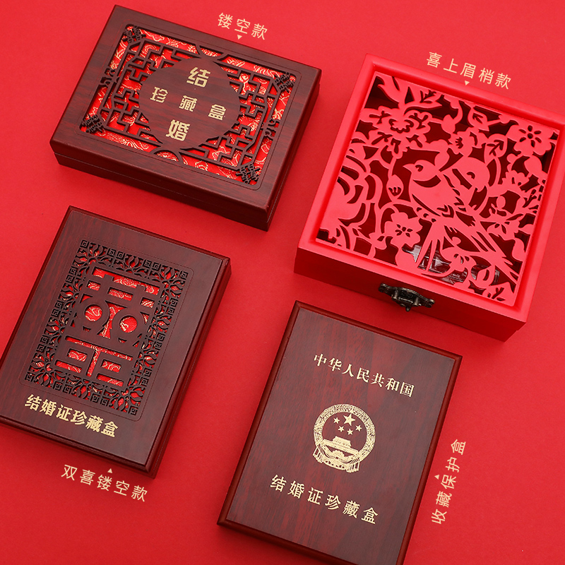 Wedding supplies Wedding certificate storage box Creative documents collection commemorative wooden box Gift for the bride and groom