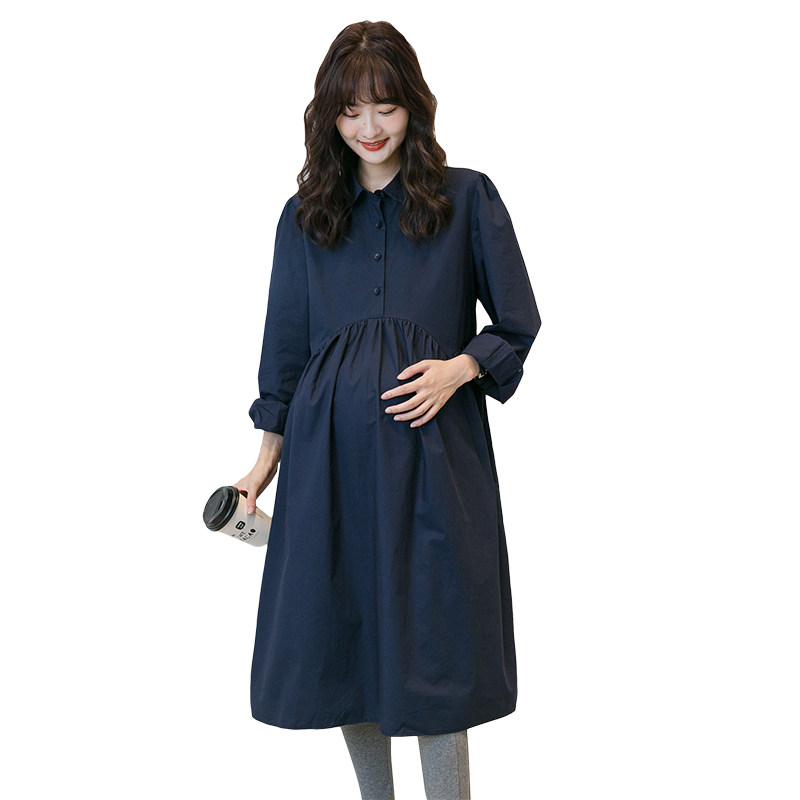 Spring dress pregnant woman dress with waist display slim medium long version of gestation woman dress shirt dress shirt skirt with long sleeves for pregnant women