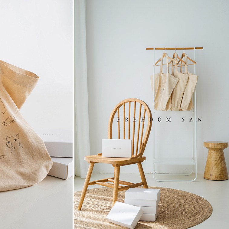 Freedom Yan Swallow hand painted cat pure cotton literary canvas bag Japanese lazy wind