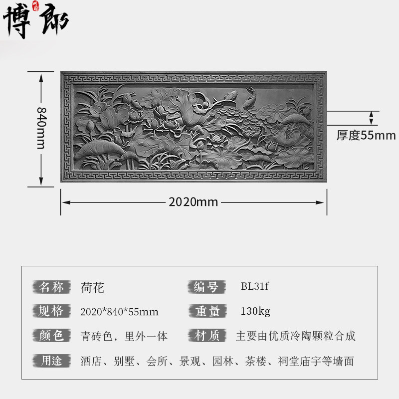 Boorang brick sculptures antique brick sculptures Chinese rectangular lotus ancient construction embelles embossed pendant shadow wall background wall custom