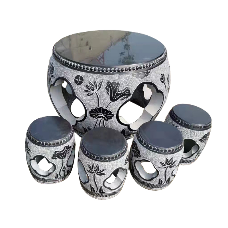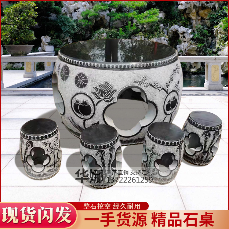 Stone Table Stone Bench Courtyard Garden Stone Table Home Outdoor Villa Antique Round Table Natural Outdoor Stone Table and chairs-Taobao