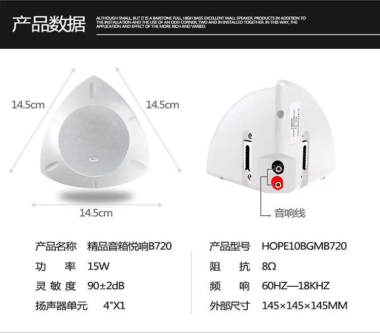 hope 720 triangle wall-mounted speaker speaker pair of arc design can be hung directly in the corner