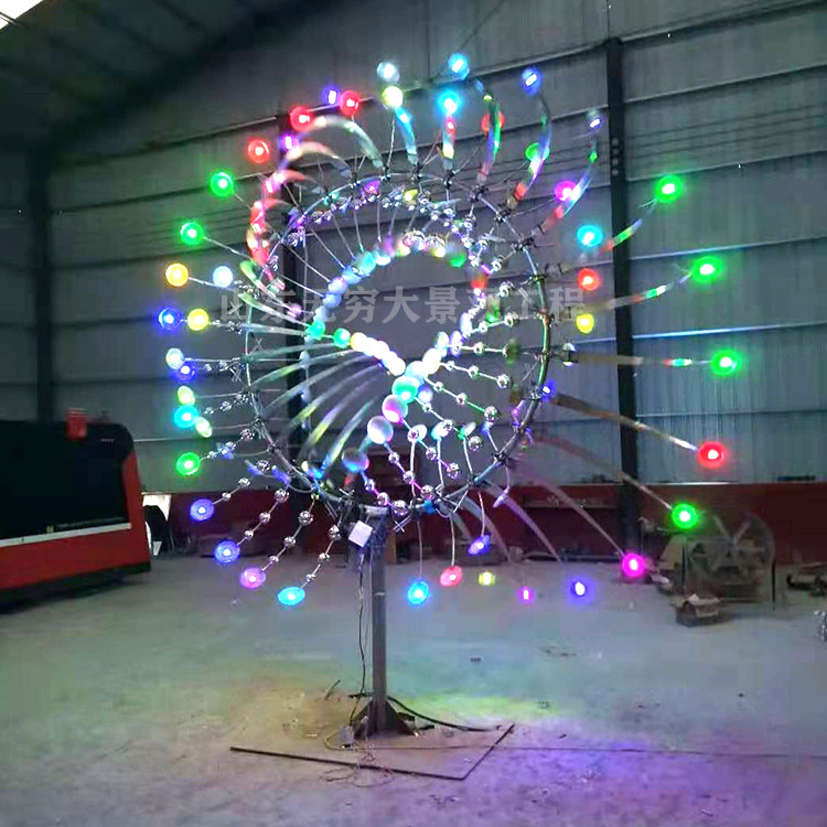 Professional custom luminous art windmill urban garden landscape decoration large stainless steel large outdoor pneumatic sculpture