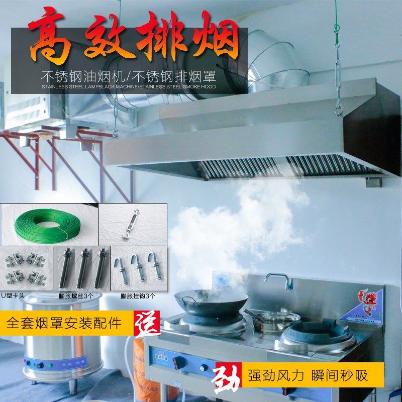 Commercial Hotel Hotel Kitchen Range Hood Silent Large Suction Ventilation Purifying Oil Smoke Barbecue Stainless Steel Smoke Exhaust Hood