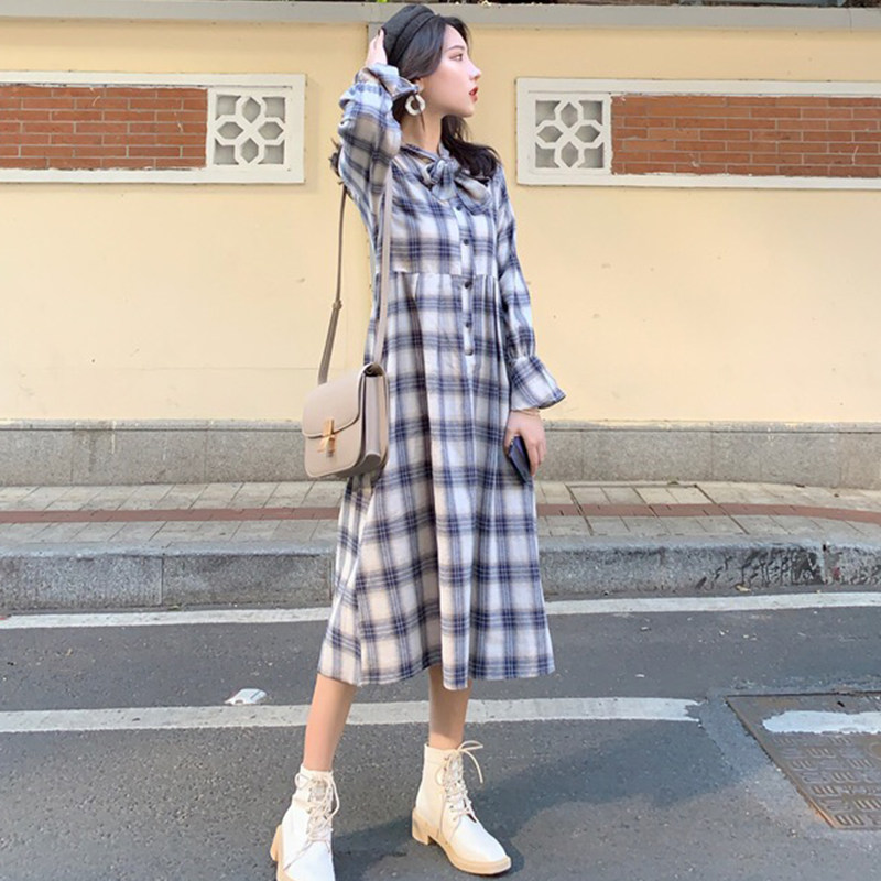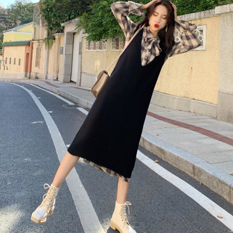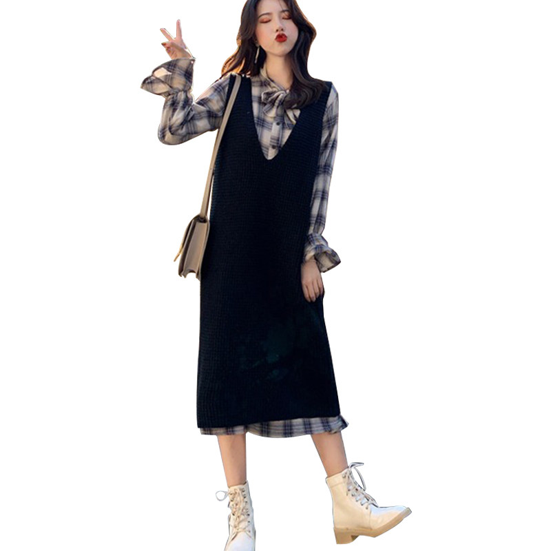 Large size women's clothing autumn 2020 new fat mm long-sleeved long-sleeved dress vest two-piece set of Foreign school age-reducing tide
