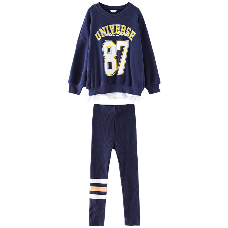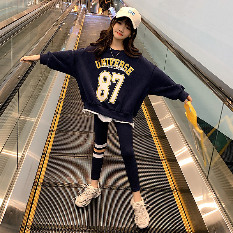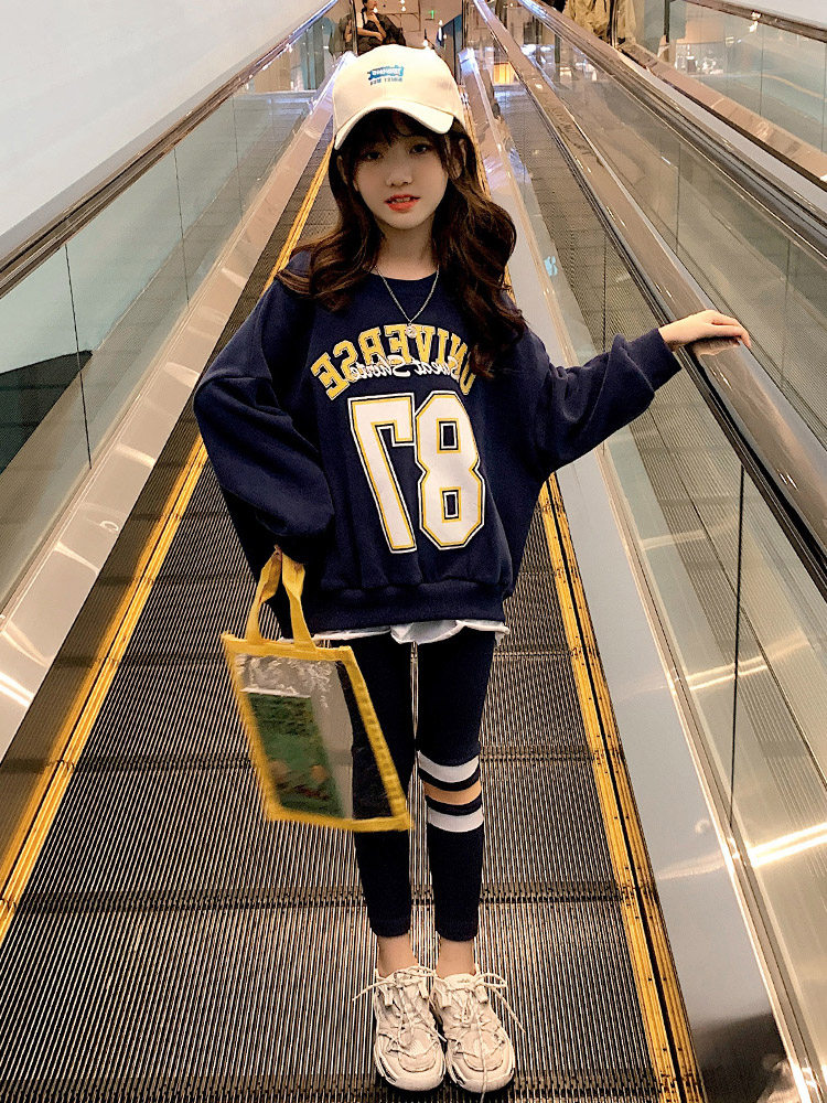 Girls' casual suit 2022 autumn new middle and big children loose sports Western style sweater little girl two-piece tide