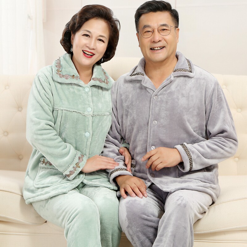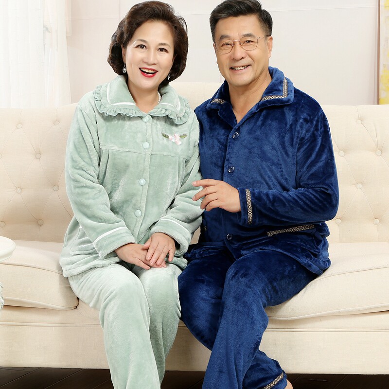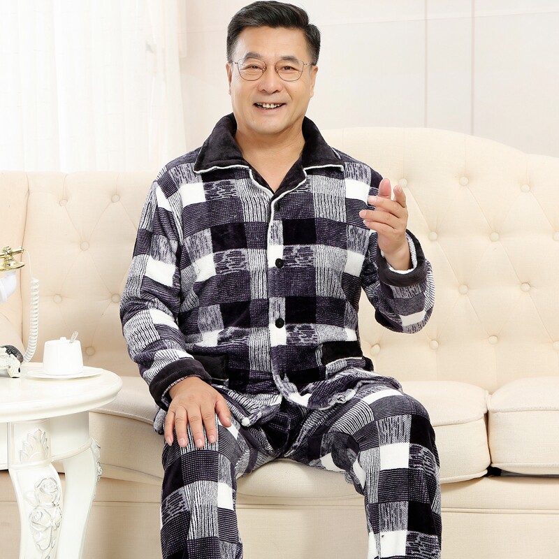 Men's pajamas autumn and winter middle-aged and elderly coral velvet thickened plus velvet middle-aged father flannel home suit suit