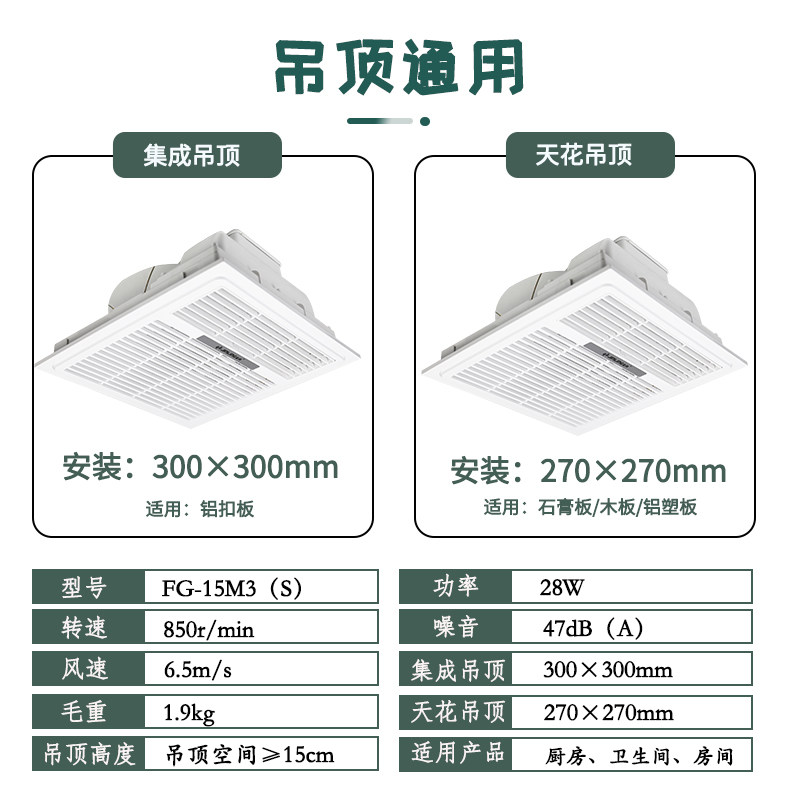 Jinling Kitchen Liangba Integrated Ceiling Ceiling Embedded 300x300 Air Cooler Fan FG-15M3(S)