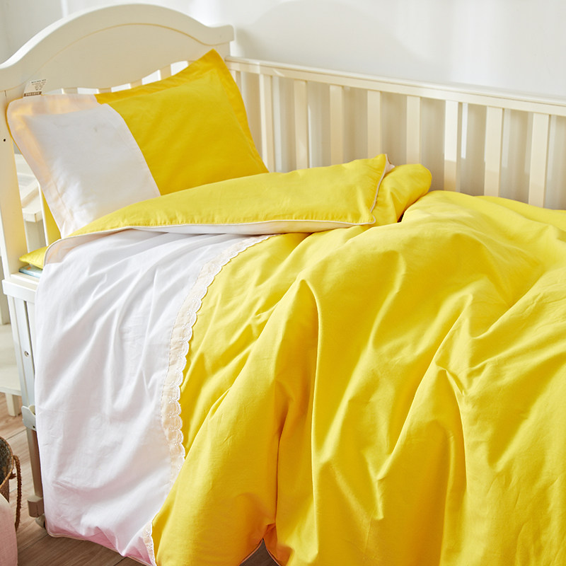 Custom-made solid color embroidered LOGO kindergarten quilt three-piece cotton mattress nap into the garden Six-piece set of early education